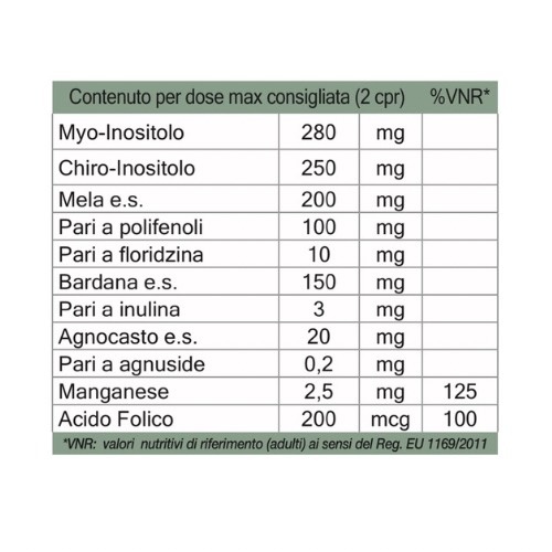 - D-Chiro-Inositol and Apple extract promote glycemic index and body weight control, counteracting insulin resistance and excess weight.
